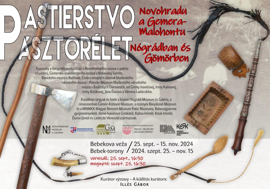 25.09.2024, 16:30 hod. - 15.11.2024| Hradné múzeum vo Fiľakove - Bebekova veža | Hradné múzeum vo Fiľakove pozýva milovníkov etnografie a všetkých záujemcov na vernisáž výstavy s názvom „Pastierstvo Novohradu a Gemera-Malohontu“, ktorá sa uskutoční dňa 25.9.2024, o 16:30 hodine v Bebekovej veži. Vystavené predmety a fotografie pochádzajú z Novohradského múzea a galérie v Lučenci, Gemersko-malohontského múzea v Rimavskej Sobote, BaníckeZverejnené 20.9.2024