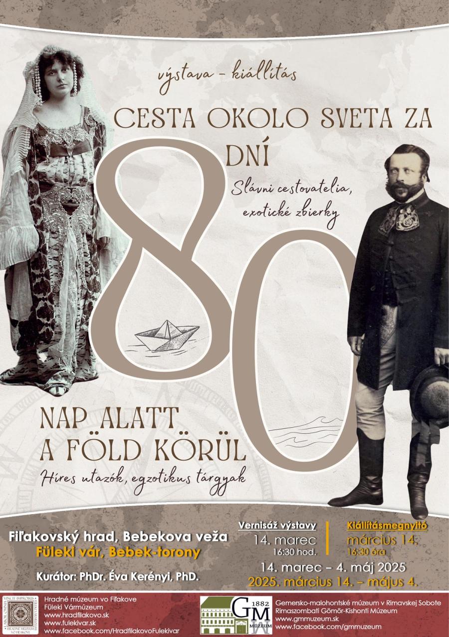 14.03.2025 16:30 hod. - 04.05.2025 | Hradné múzeum vo Fiľakove | 14. marca 2025 sa otvára turistická sezóna na Fiľakovskom hrade, ktorú zaháji výstava s názvom „Cesta okolo sveta za 80 dní“. Prezentuje rôzne exotické artefakty zo zbierok Gemersko-malohontského múzea v Rimavskej Sobote, zachované z obdobia rokov 1850 až 1950. V zbierkach múzea sa vo veľkom počte nachádzajú aj predmety z mimoeurópskych, exotických oblastí. Cestovatelia, zberaZverejnené 7.3.2025 -dk-