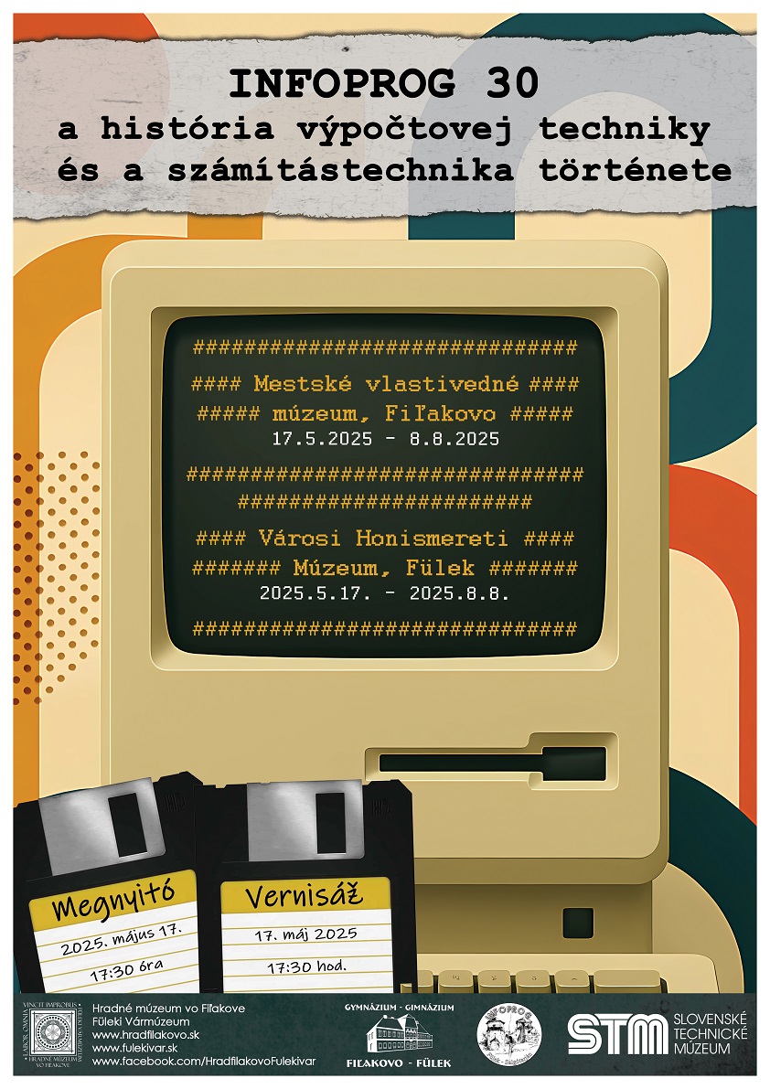 Dňa 17. mája sa môžu záujemcovia opäť tešiť na nové výstavy a bohatý kultúrny program v rámci Noci múzeí a galérií. Večerný program zaháji o 17:30 vernisáž výstavy s názvom „INFOPROG 30 a história vývoja výpočtovej techniky“ v galérii Mestského vlastivedného múzea. Výstava prezentuje priebeh a výsledky 30 rokov medzinárodnej súťaže stredných škôl s vyučovacím jazykom maďarským – INFOPROG – zameranej na programovanie a informatiku. Organizátorom súťaže je fiľakovské gymnázium, ktorého študenti zavedú návštevníkov o 18:00 do tajov robotiky a programovania drónov prostredníctvom zaujímavých predstavení na nádvorí múzea. Výstavu doplnia kultové počítačové zostavy zo zbierok Slovenského technického múzea Košice a Gymnázia vo Fiľakove. Nadšenci budú mať celý večer možnosť si zahrať aj známe PC hry 20. storočia.