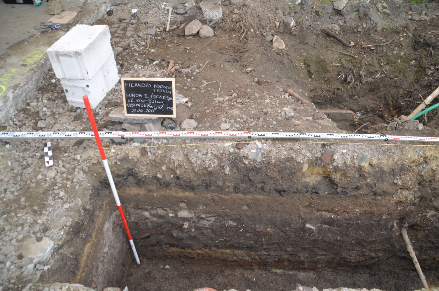 Výskum sa v intenciách uvedeného rozhodnutia realizoval formou otvorenia jednej zisťovacej sondy – Sondy I, pretínajúcej južnú časť areálu v smere východ - západ a ďalšieho sledovania zemných prác počas vyhlbovania výkopov pre jednotlivé stavebné objekty a areálové siete. Sonda I bola umiestnená v južnej časti skúmanej plochy a mala pretnúť celé nádvorie. Cieľom bolo chytiť úsek západnej línie mestských hradieb zo 17. storočia. Línia niekdajších hradieb sa predpokladá niekde pri existujúcej ceste Trhovej ulice, presná lokalizácia však nie je možná. Sonda sa hĺbila po vrstvách a rozlíšilo sa tu 6 druhov uloženín. Z lokality pochádzajú novoveké nálezy (17. – 20. stor.). O výsledkoch archeologického výskumu sa dočítate v priloženej výskumnej dokumentácii