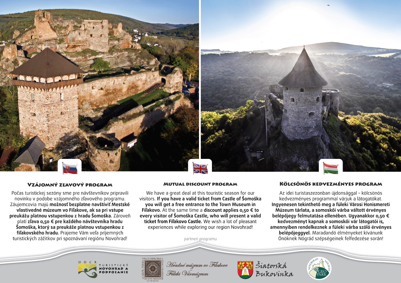 Záujemcovia majú možnosť bezplatne navštíviť Mestské vlastivedné múzeum vo Fiľakove, ak sa pri vstupe preukážu platnou vstupenkou z hradu Šomoška. zároveň platí zľava 0,50 € , pre každého návštevníka hradu Šomoška, ktorý sa preukáže platnou vstupenkou z fiľakovského hradu. Prajeme Vám veľa príjemných turistických zážitkov pri spoznávaní regiónu Novohrad.