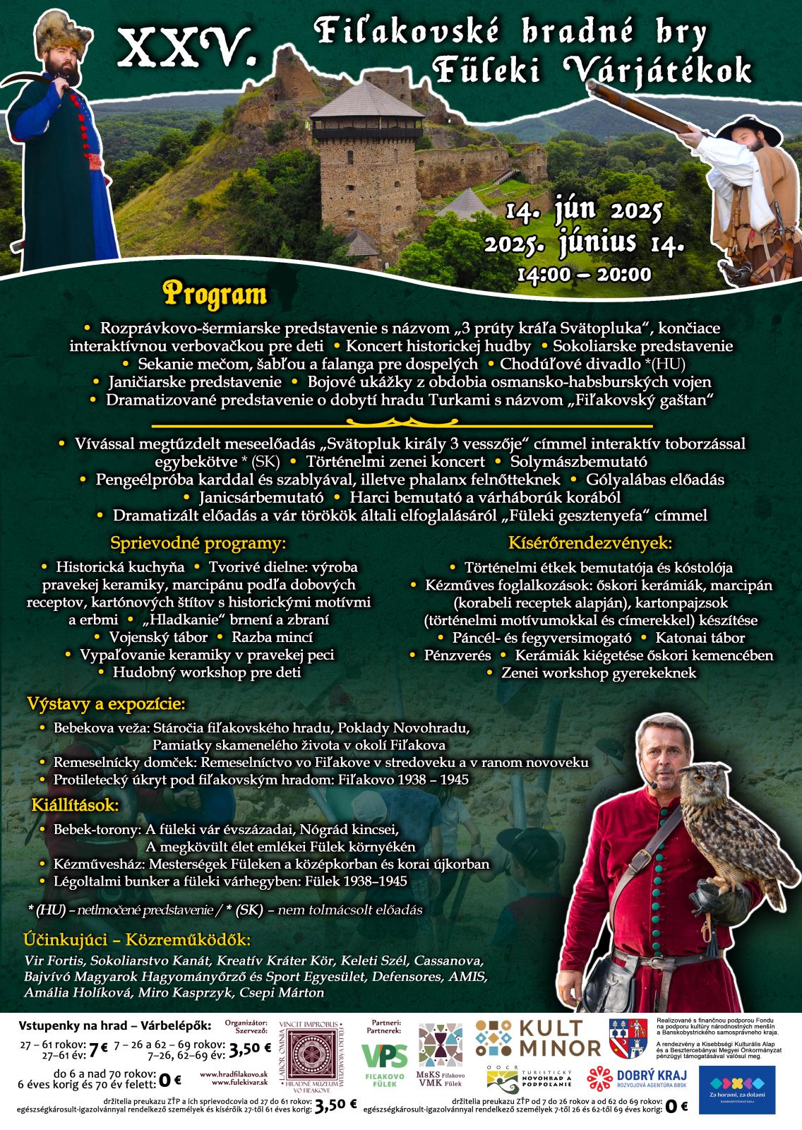 14. júna 2025 si milovníci histórie, ktorí zavítajú na Fiľakovský hrad, opäť prídu na svoje. Podujatie sa každoročne teší obrovskému záujmu verejnosti. Publikum si v rámci programu, začínajúceho od 14:00 hodiny, bude môcť užiť vystúpenia historických skupín prezentujúcich hlavne obdobia 13. – 17. storočia, i život vojenskej posádky a bežného ľudu. Pestrý kultúrny program ponúka nielen informácie o histórii okolia, ale aj skvelú zábavu pre všetky vekové kategórie. Vystúpenia, divadelné predstavenia a iné činnosti určené pre tých najmenších ich humornou formou zabavia aj poučia. V rámci rôznych workshopov sa návštevníci môžu priučiť starým remeslám, alebo si na vlastnej koži vyskúšať život v danej dobe. Okrem toho bude podujatie tento rok zamerané aj na dobovú gastronómiu, v rámci ktorej budú môcť záujemcovia ochutnať pripravované jedlá, a prezentované budú aj jednotlivé prísady a spôsob ich prípravy. V programe účinkuje niekoľko historických skupín. Rozprávkovo-šermiarske predstavenie s názvom „3 prúty kráľa Svätopluka” spojené s interaktívnou verbovačkou pre deti sa uskutoční v podaní skupiny Vir Fortis, ktorá predstaví aj to, ako sa voľakedy sekalo mečom a šabľou, ale dospelí si môžu vyskúšať aj boj vo falange. Deti určite zaujme aj chodúľové predstavenie divadla Kreatív Kráter Kör, či ukážky už stáleho hosťa podujatia – Sokoliarstva Kanát.